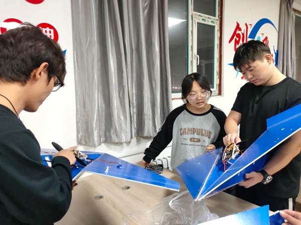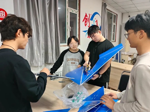 活动现场热闹非凡,近五十名成员以小组为单位分散在各个研发区域,身影穿梭、讨论声此起彼伏,处处洋溢着浓厚的科创氛围。现场涵盖航模研发、智能小车攻关、机械结构优化、电子编程调试等多个技术方向,10余支小组同步推进不同项目,形成“多点开花、互助共进”的良好局面。航模小组各有侧重,对飞行器进行全流程精细化打磨,从机翼安装的角度校准到动力系统的参数优化,每一个环节都反复验证,力求飞行器性能最佳。
